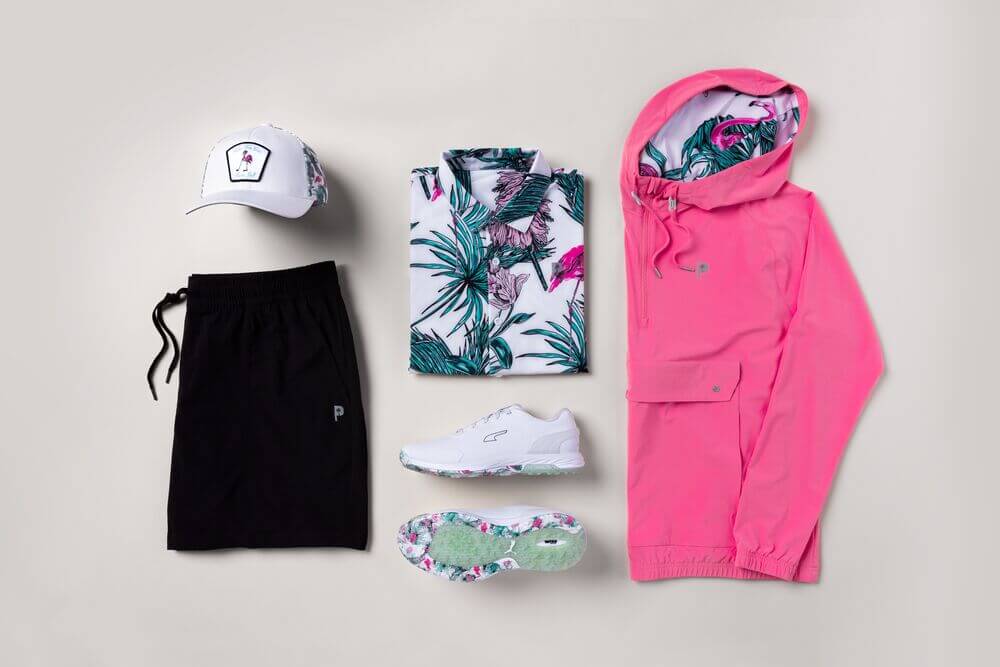 PUMA Golf and Rickie Fowler have partnered with iconic DJ, KYGO and his lifestyle brand, PALM TREE CREW, to release a fresh drop. Whether your vacation takes you to a course or a beach, show up in style in the all-new PUMA Golf x Palm Tree Crew Collection. Vibrant colors, unique prints, and premium fabrics make this collab one-of-a-kind. The print will give you a feeling of summer weather and good vibes. The drop features a fresh color palette dominated by pink, white, and black with pink Flamingos.