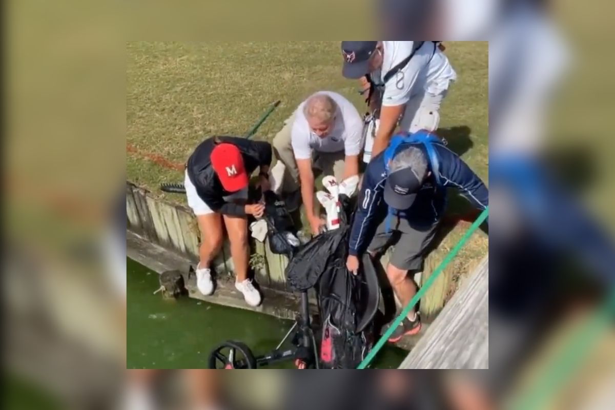 University of Maryland freshman Karla Vazquez Setzer gave her pushcart, bag, and clubs an unintentional bath at the Landfall Tradition on Monday. While playing the par-3...