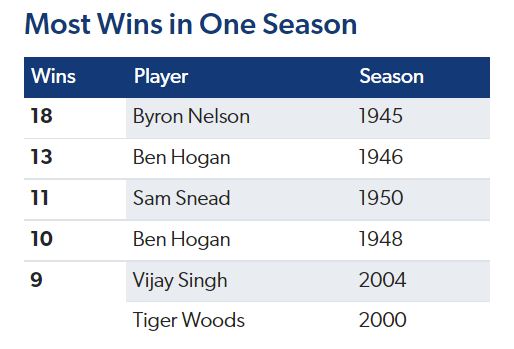Bryon Nelson had the best year of golf in the sport’s history. He won 18 events in one season while winning 11 tournaments in a row in 1945! Some may argue that he wasn’t facing the best at the time because of players that were in the war, however his 68.33 stroke average said otherwise which was a whole stroke better than anyone the previous season.