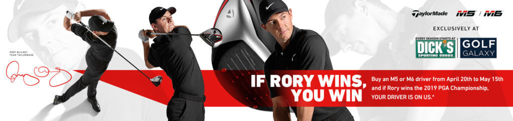 It’s a pretty simple concept. If you buy an M5 or M6 driver at a DICK’S Sporting Goods or Golf Galaxy any time between now and May 15th and Rory McIlroy wins the 2019 PGA Championship, your new driver becomes a free new driver.