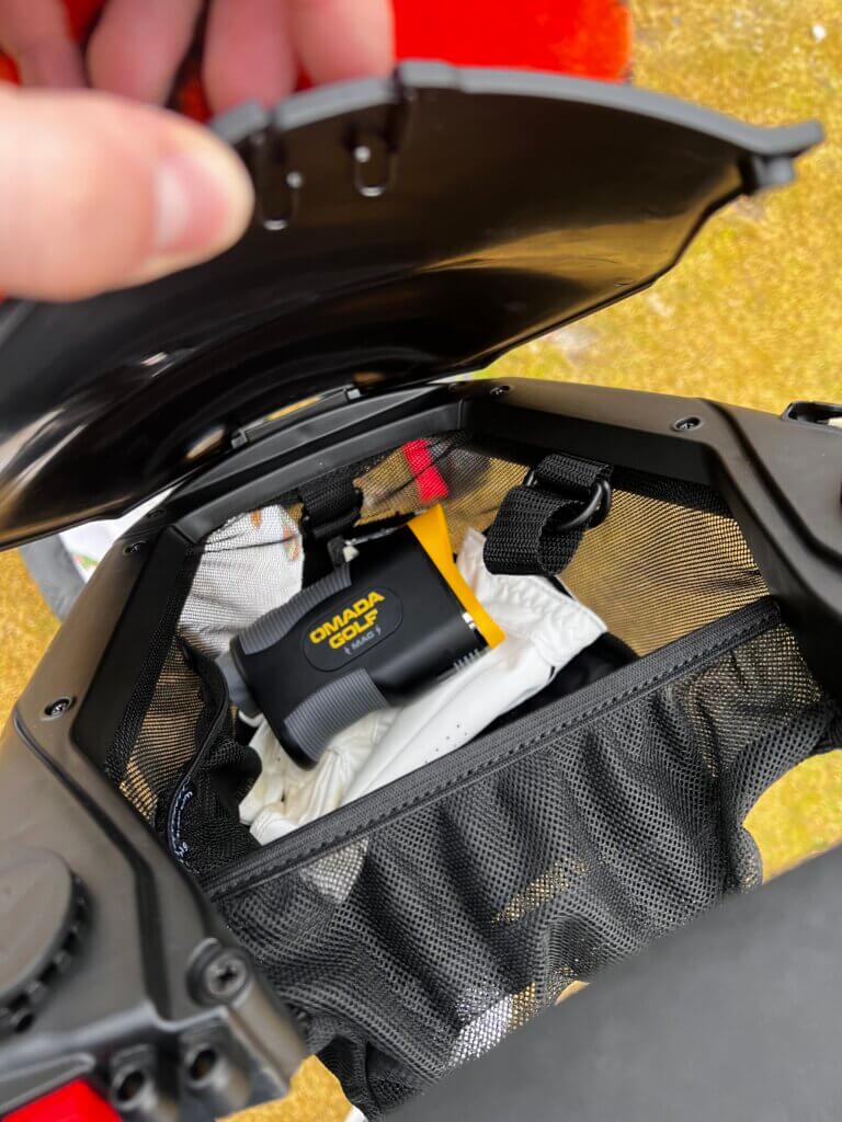 The storage compartment is also spacious and easily accessible. There are also several notches on the cart for attachments like a drink cup holder. These were not included, and can be purchased separately.