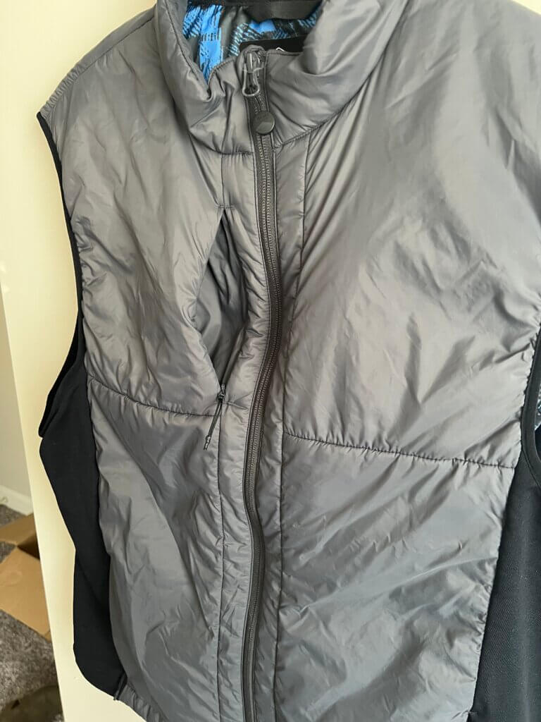 I was sent the Steel Black colorway, which features a very cool design on the inside that captures an interesting pattern with various shades of blue and black. But where this vest really shines is its 37.5 insulation, which Sun Mountain says is “chemical-free, and provides an extreme weight-to-warmth ratio and never washes out or grows tired.”