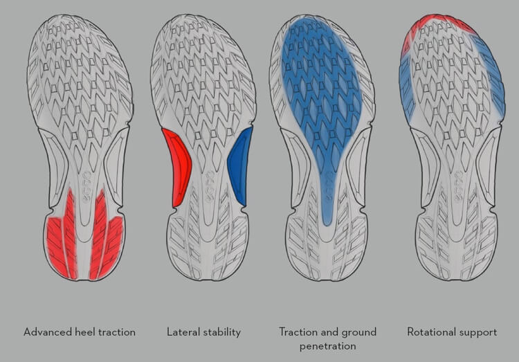 Additionally, the BIOM H4 comes with X-TENSA INVISIBLE Technology that links the sole unit’s T.PU blocks—which adds stability and some vibrant color accenting—to the lacing system via internal enforcement for 360° stability.
