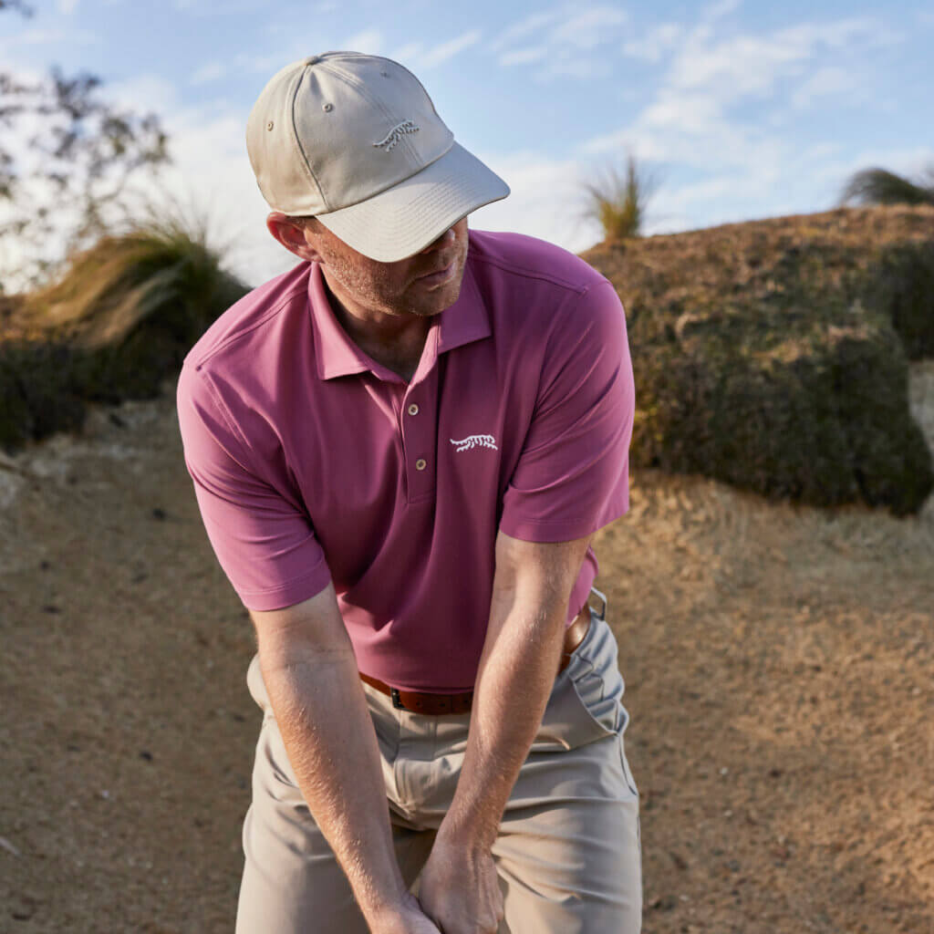 It looks as if SDR truly wanted to encapsulate the look and feel of Augusta National Golf Club and its signature event, The Masters, in this collection with specific colors, especially the Dark Azalea polo, seen below:
