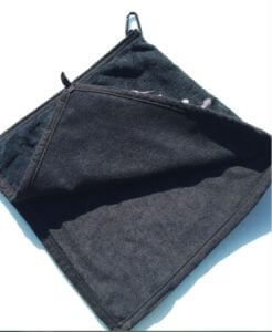 This towel has a unique feature where you can pour a cup of water on the INSIDE and moisten the inside waterproof interior membrane of the towel – leaving the outside high and dry. This enables you to clean any club and dry it in one step. Even better? When it rains, you let the OUTSIDE get wet and keep the inside dry, and you have the exact same ability.